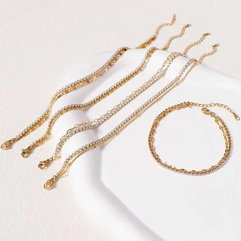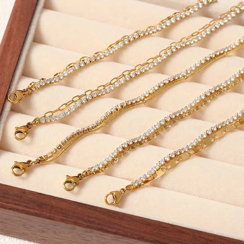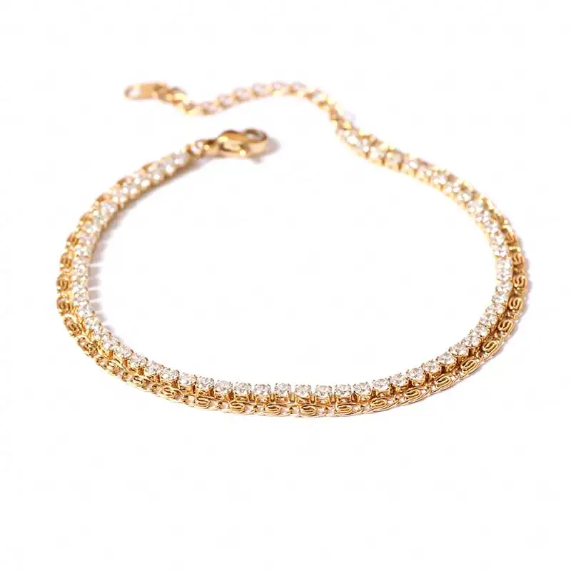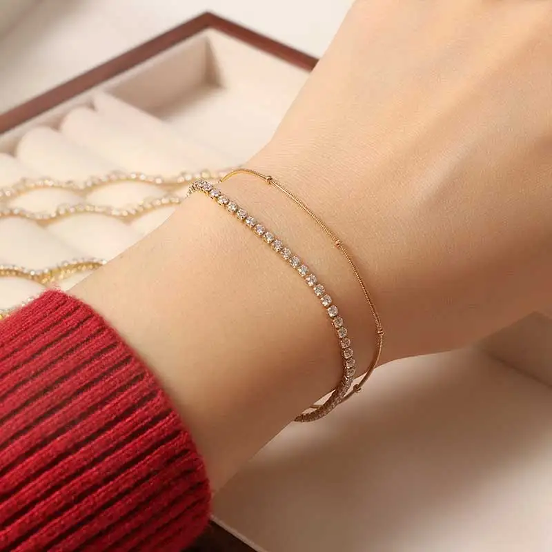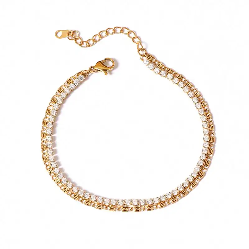 Double-Layer 18K Gold Plated Cubic Zirconia Tennis Bracelet for Women Fashionable Stainless Steel Link Chain Classic Trendy
